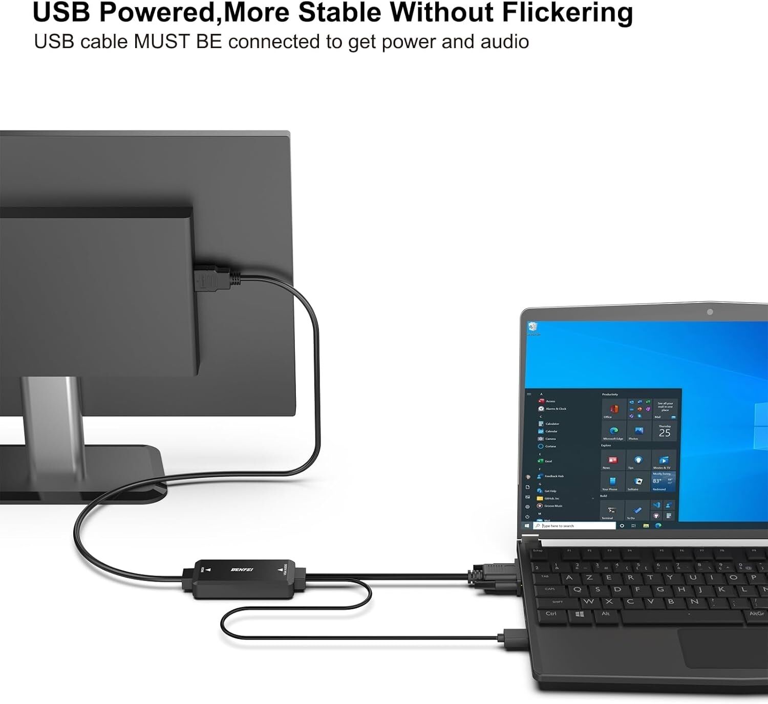 The BENFEI VGA Source to HDMI cable is a Analog to Digital solution, connects a computer, desktop, laptop, or other devices with VGA port to a monitor, projector with HDMI port; Attention: the VGA to HDMI conversion is unidirectional, from VGA Source to HDMI Monitor, it doesn't work from HDMI Source to VGA Monitor