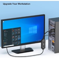 With an integrated USB cable that embeds the audio along with the video over HDMI; Digital USB audio can be configured from the Sound menu in Windows to output the audio to the connected display