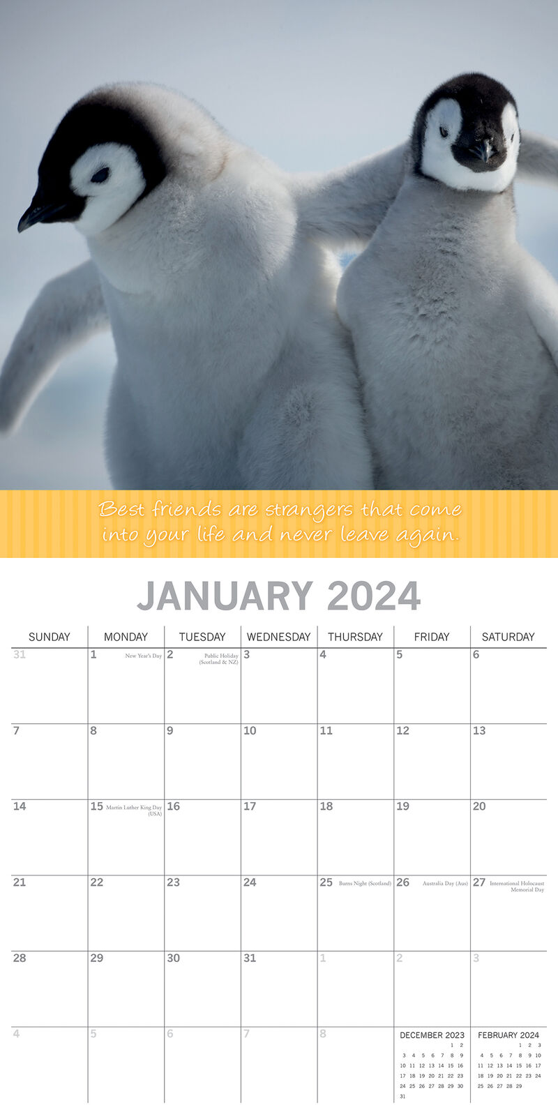 This beautifully designed Square Wall Calendar is perfect for your home or office and is the perfect Holiday present for your loved ones. With 13 beautiful pictures of the 2024 Best Friends, one for each month. Brand New Calendar with Beautifully design, Sealed in Original Packaging, each calendar includes a large grid running from Sunday to Saturday. Publisher: The Gifted Stationery Co. Dimensions: 30cm (w) x 30cm (h) closed; 30cm (w) x 60cm (h) opened Time Span: 16 months (January to December 2024 monthly, September to December 2023 on-a-page) 2024 Square Wall Calendar featuring beautiful colour photographed images for every month of the year. Like most Wall calendars, this one comes with: