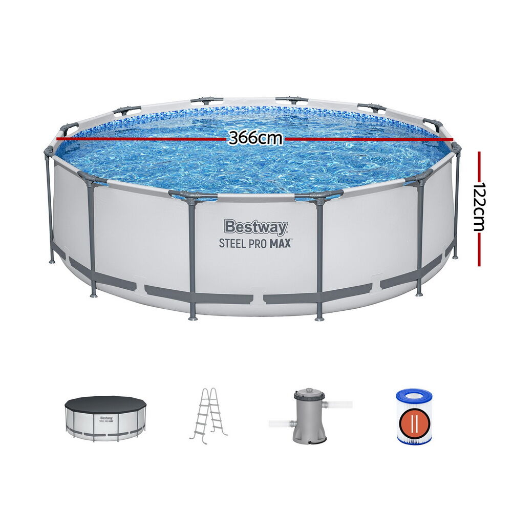 Pool size: 366cm x 366cm x 122cm (12' x 12' x 48")