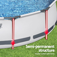 This Bestway Steel Pro MAX™ Pool features a rust-resistant steel frame, UV-resistant PVC and polyester walls, and a durable, semi-permanent design for summer-long use. It includes an easy-drain valve with a garden hose adapter for convenience.