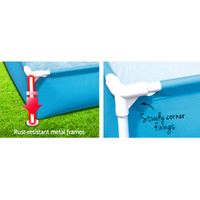 The Bestway Kids Swimming Pool features rust-resistant steel frames, heavy-duty PVC and polyester 3-ply side walls and enhanced corner connectors to keep the entire ensemble firmly in place. The square pool has a water capacity of 356 litres. A built-in flow control drain valve can be attached to a garden hose for hassle-free filling or draining. A repair kit is also included.