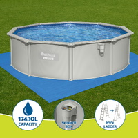 This Bestway Hydrium™ Steel Wall Pool offers premium backyard fun with rust-resistant galvanized steel walls and UV-protected PVC liner for ultimate durability. The complete set includes a powerful 1600GPH sand filter pump, safety ladder, pool cover, ground cloth and repair patch - everything needed for instant summer enjoyment! Its integrated skimmer keeps water clean while the easy-drain valve simplifies maintenance. With 17430L capacity, this semi-permanent pool delivers exceptional quality and safety. Perfect for families seeking a large, low-maintenance swimming pool that withstands years of use. Get ready to create unforgettable memories - order your HydriumHydrium™ pool today!