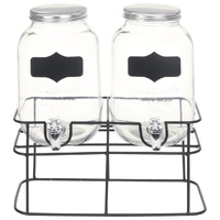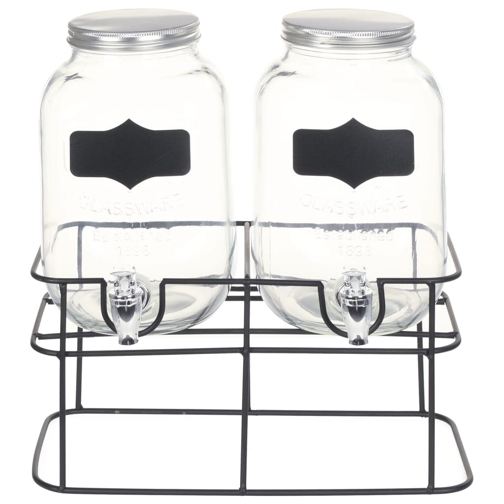 Add a vintage charm to your kitchen and bar area with our glass beverage dispenser set! This vintage water jars are suitable for serving many types of different beverages and is also ideal for sharing drinks on parties and BBQs. Made of transparent glass, the dispenser exudes a simple and clean look, allowing you to easily monitor and identify the beverage. The wide mouth ensures you put or take out fruits easily and quickly. Thanks to the screw-on lid, the glass container features a good sealing, ensuring your drink stay fresh for longer. Additionally, the integrated tap makes it easy for your guests to serve themselves at your party. Delivery includes 2 beverage dispensers and a stand.