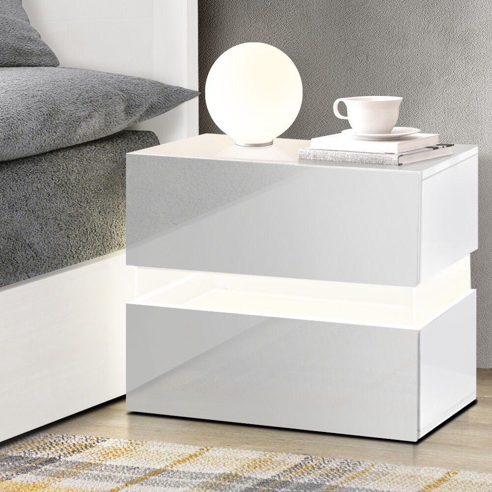 NOW $83.66Tired of fumbling in the dark for a light switch in the middle of the night? With our Artiss Lume LED Bedside Table, your problems are solved. The bedside table comes with built-in RGB LED lighting that can be customised into 16 different colours to suit your preference. Not only will the table create a beautiful ambience, it will also save you from buying extra bedside lamps or nightlights. Available in black and white, the bedside table will be the perfect addition for your modern bedroom with its contemporary and linear design. Or you can keep one in the living room to wow all your houseguests. The two drawers have push-to-open mechanisms to maintain the sleek appearance and they provide ample storage for all your bedside, or living room, essentials.