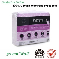 This Cotton Mattress Protector by Bianca is made from 100% cotton japara top fabric. It features 230gsm cotton filling, healthguard treated, anti dust mite 50cm wall. Fully machine washable.