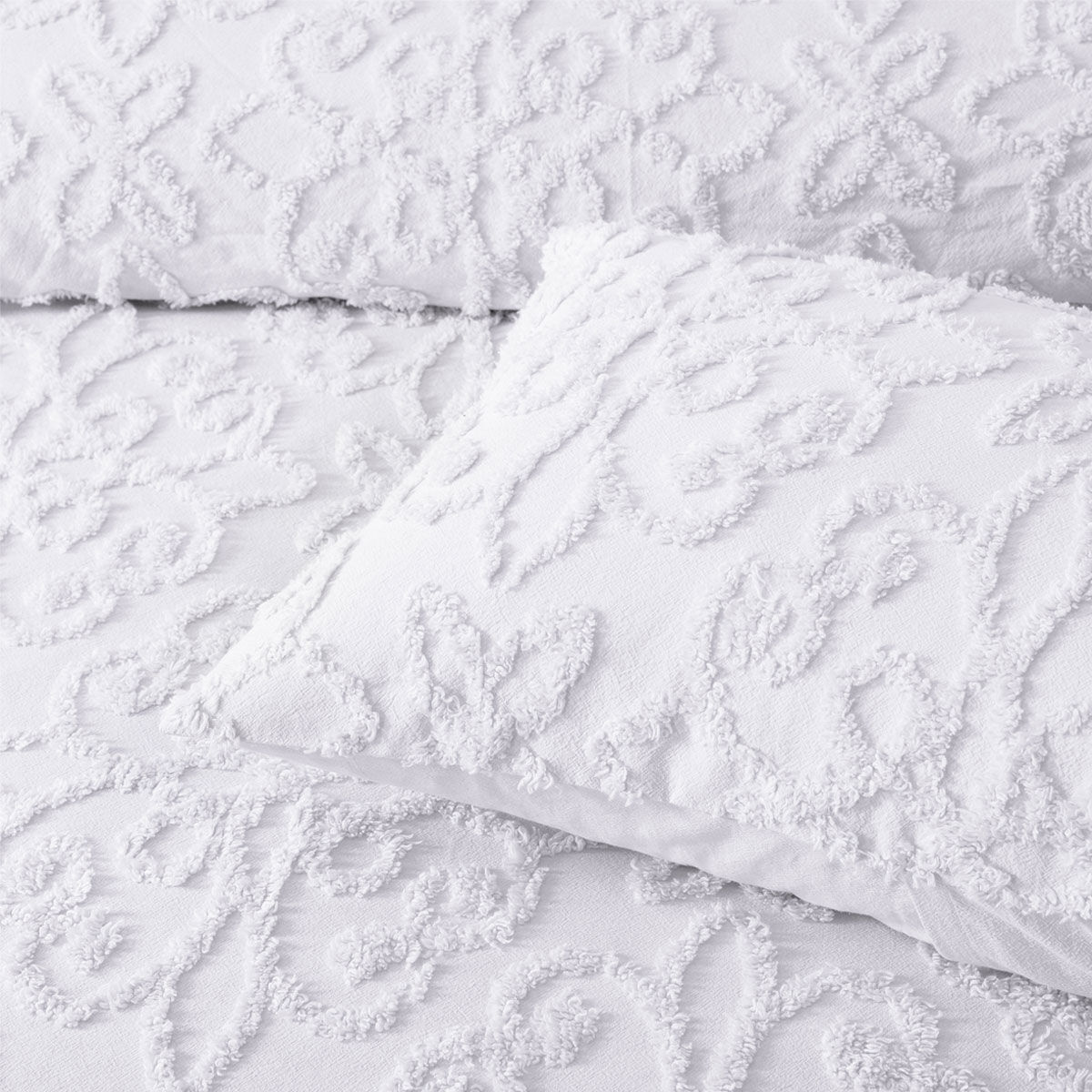 Super soft cotton chenille fabric has been carefully selected by our design team to create this absolutely beautiful Ella White Cotton Chenille Floral Bedspread Set by Bianca. A stunning textured motif pattern covers the entire bed. Available in blush and white, this easy-care bedspread is one that you will love. Complete the look with matching accessories.