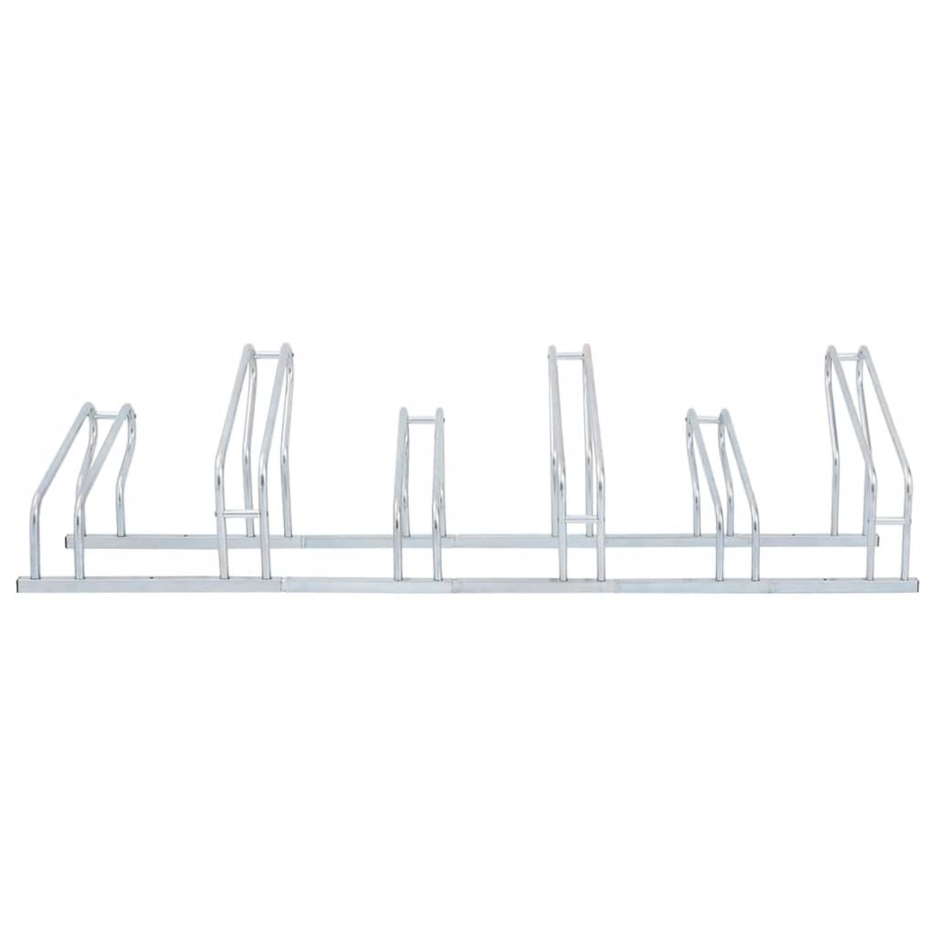 Utilise this bicycle stand to safely and efficiently park your bikes, saving valuable space.Sturdy and long-lasting: This bicycle stand is made of galvanised steel, making it sturdy, corrosion-resistant, long-lasting, and lightweight for easy movement.Space-saving: This bicycle stand has a high-low wheel design and accommodates six bikes without handlebar tangling, optimising space for efficient parking.Stable structure: You can fasten the bicycle stand securely using the provided screws to prevent your bike from tipping or falling, ensuring it remains stable.Wide applications: This bicycle stand is perfect for accommodating multiple bikes with tyre widths of up to 55 mm and is suitable for indoor and outdoor use in various settings, including garages, warehouses, schools, shops, and more.
