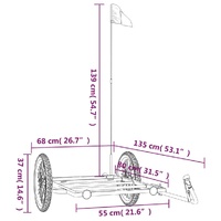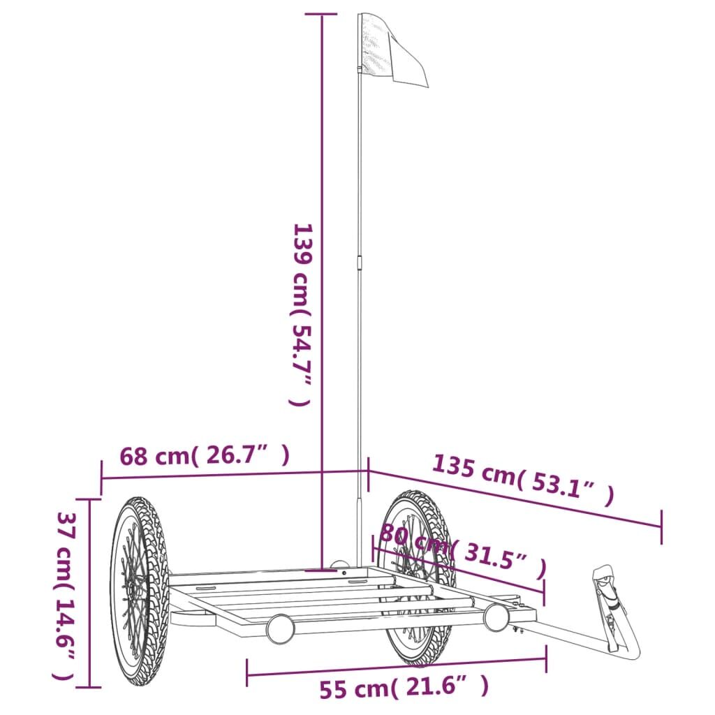 This versatile and sturdy bike trailer will be ideal for transporting heavy goods thanks to its maximum load capacity of 45 kg. Sturdy material: Iron is a strong and hard material. It's a solid favourite in industrial and furniture construction. Made of iron, this bicycle cargo trailer is very sturdy and durable.Practical design: This bike cart with a maximum load capacity of 45 kg, is perfect for hauling heavy goods like luggage, plants, tools or groceries.Considerate design: The bike trailer has a tow bar that makes it easy to connect it to a bicycle. At the same time, a safety flag is included for extra visibility.