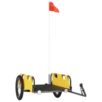 This bike trailer is perfectly suited for all transport purposes by connecting it to your bicycle. Robust construction: This bike trailer has a sturdy construction that is made of powder-coated iron. Iron is a strong and hard material. It's a solid favourite in industrial and furniture construction. The powder coating on the surface of iron creates a protective layer against rust, corrosion, and wear.Durable material: This bicycle trailer is made from oxford fabric which is lightweight, water-resistant, and also resistant to damage and dirt. The yarn used for weaving makes the fabric durable and breathable. It is also naturally resistant to wrinkles.Safe riding: The bicycle cargo trailer has two large wheels that allow for smooth and superior tracking on various grounds, and the reflectors on the rear provide visibility in the dark, plus the flag can increase traffic safety.Wide applications: Easy to be attached to your bicycle, this bike cart can carry whatever you need to take with you, such as luggage, plants, tools, or groceries.