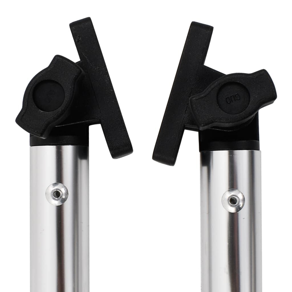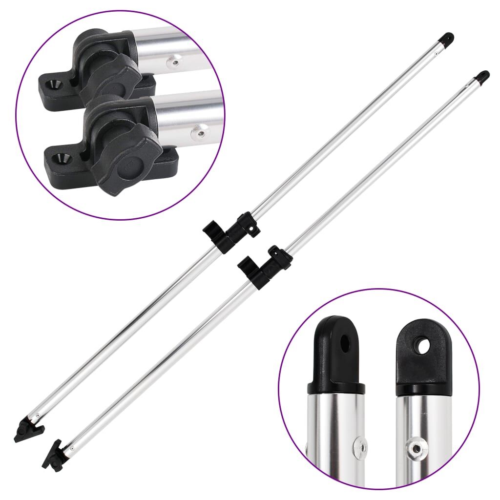 This set of 2 bimini top support poles is a perfect replacement for your rear nylon straps and will make your bimini top even sturdier. Made of anodized aluminium, these 2 support poles are extremely durable and ensure years of service. They are universal fit for both 3 bow and 4 bow bimini tops, and the length can be adjusted from 66 cm to 110 cm. These aluminum support poles are sturdier than traditional nylon straps and also can be removed easily by simply unscrewing the deck hinge to fold your bimini top down. Delivery includes 2 support poles and 4 screws.
