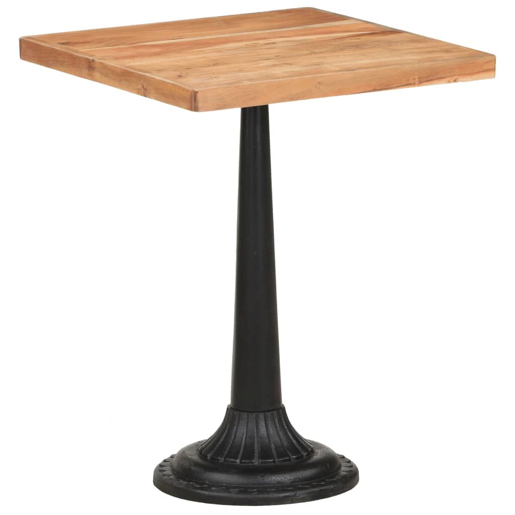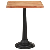 Add a touch of romantic atmosphere with this wooden bistro table! The tabletop is made of solid acacia wood, making it sturdy and stable. The cast iron base provides stability and sturdiness for it. This dinner table even serves as a table to place your drink or any other necessity you need close at hand. Important note: Colours and grains vary from piece to piece, making each piece unique. The delivery is random as well.