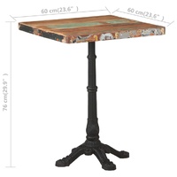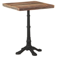 Add a touch of romantic atmosphere with this wooden bistro table! The tabletop is made of solid reclaimed wood that sourced from joists, floors and support beams from old demolished buildings. So, it can consist of different types of wood like pine, teak, oak, mango wood, acacia, etc. This also means the reclaimed wood retains the characteristics of these types of wood. Reclaimed wood is already aged, weathered and dried, so it doesn't shrink or bend. Additionally, the cast iron base provides stability and sturdiness for it. This dinner table even serves as a table to place your drink or any other necessity you need close at hand. Important note: Colours and grains vary from piece to piece, making each piece unique. The delivery is random as well.