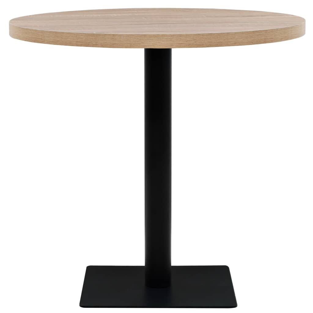 Create a romantic French atmosphere with our elegant bistro table. The tabletop is made of MDF with a grain finish and is supported by a steel leg and base. It is easy to clean with just a damp cloth. Use it as a single piece in your interior, restaurant, coffee shop or bar. Assembly of this item is easy.