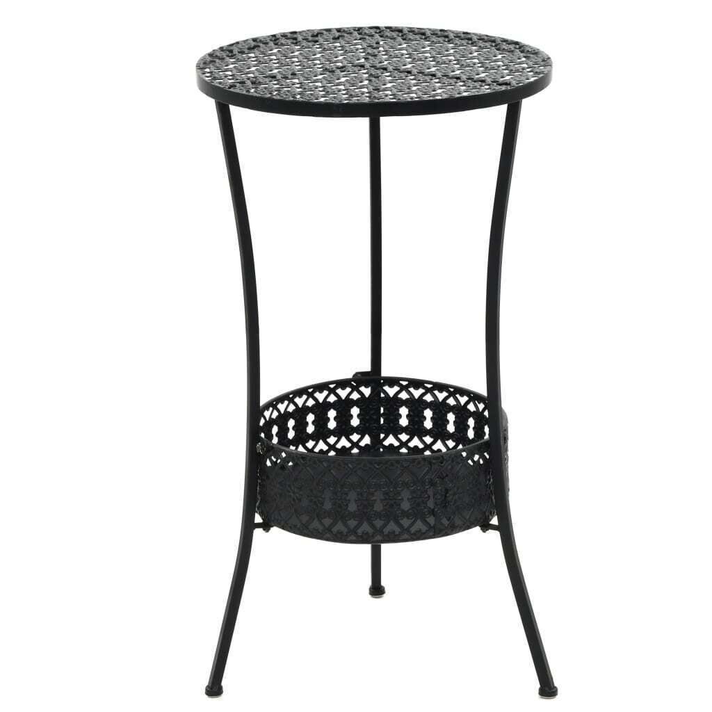 Enjoy a pleasant dinner for two on our little bistro table! This metal bistro table is adorned with exquisite details, which gives the table an antique look and makes it an eye-catcher in every room. It is designed with a bottom basket for added storage space. The item is easy to assemble.