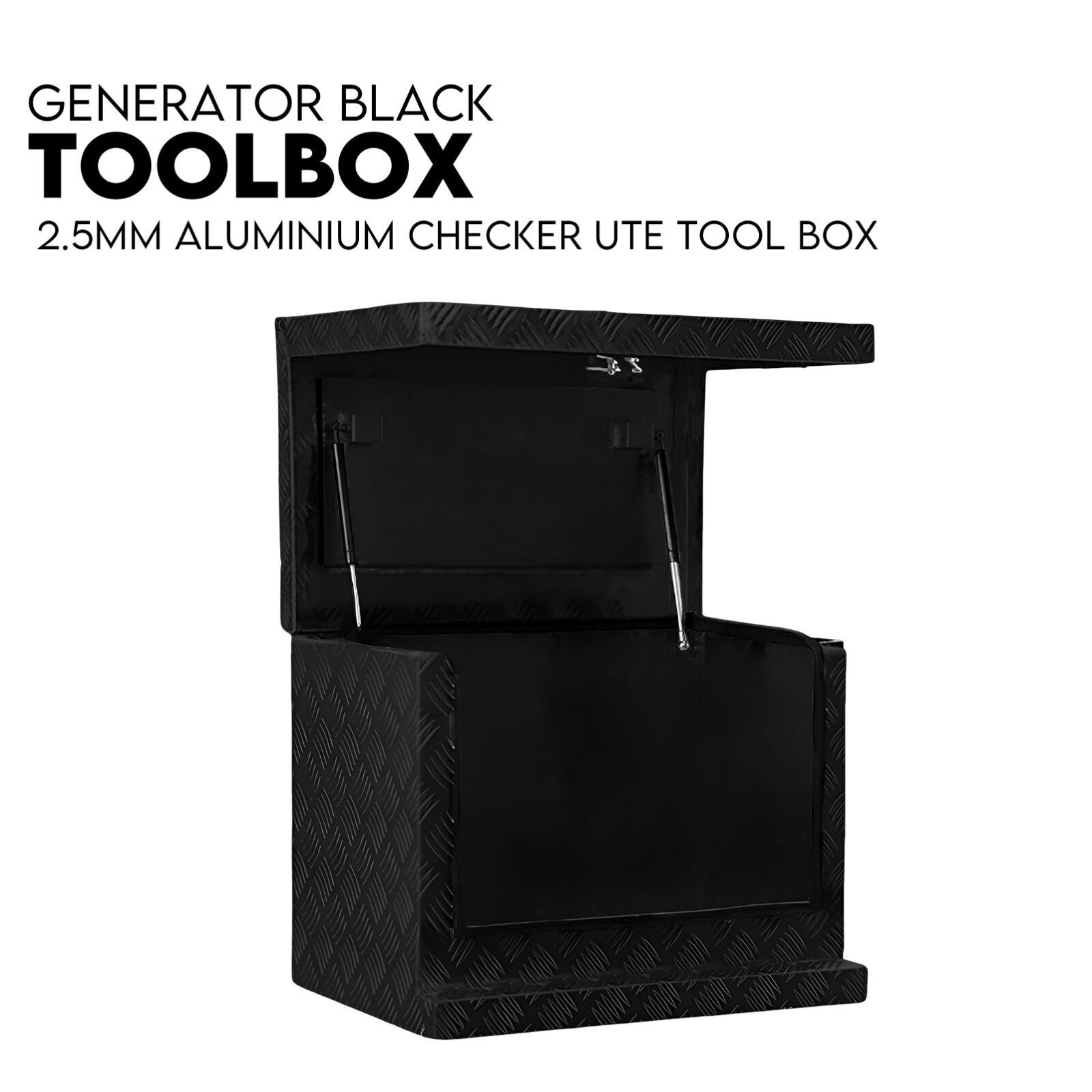Built for rough work and wild weather, the Boximus Aluminium Generator Toolbox in Black keeps your gear locked down and protected on site or on the road. Made from 2.5 mm aluminium checker plate with fully welded seams and a durable rubber seal, it shrugs off dust, rain, and the daily knocks of Aussie jobs. Lift the reinforced lid and the gas struts take the weight, giving you safe, easy access to hardware, cords, and your generator. Heavy-duty whale lock (2 keys) keep thieves honest, while the stainless piano hinge runs smooth for the long haul. Tough, tidy, and ready to work—no gimmicks, just the good gear.