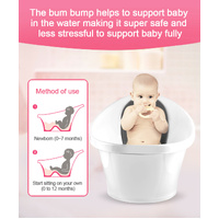 • Built-in “bum bump” gently holds your baby in place, preventing sliding and adding support in the water.