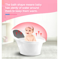 • Deep, rounded shape surrounds baby with warm water to reduce chills.