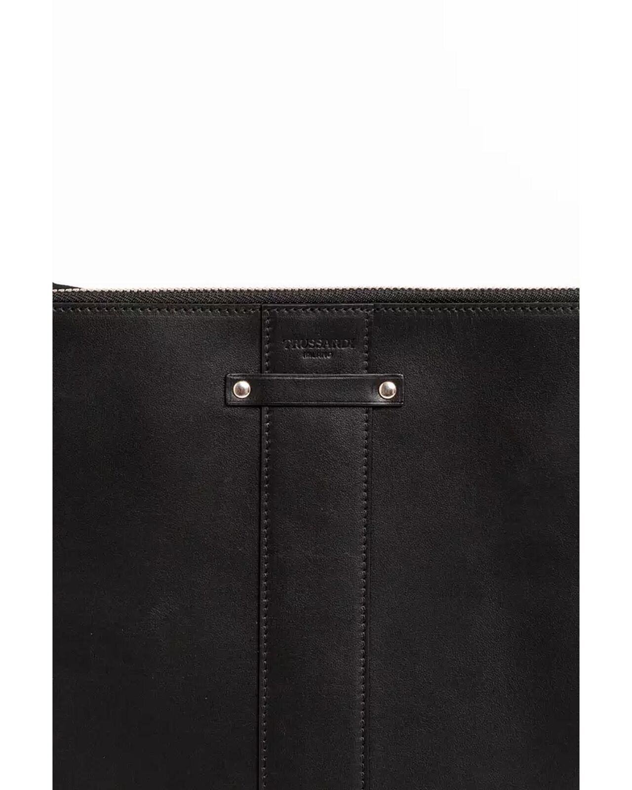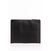 Black Calfskin Pocket Clutch Bag with Logo Detailing One Size Men