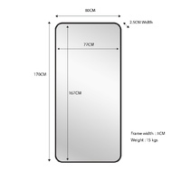 Dimensions: The total dimensions of the mirror are Length 80cm x 170cm x Width 2.5 CM. The inner mirror dimensions are Length 77CM x Height 167CM. The frame width is 1cm.