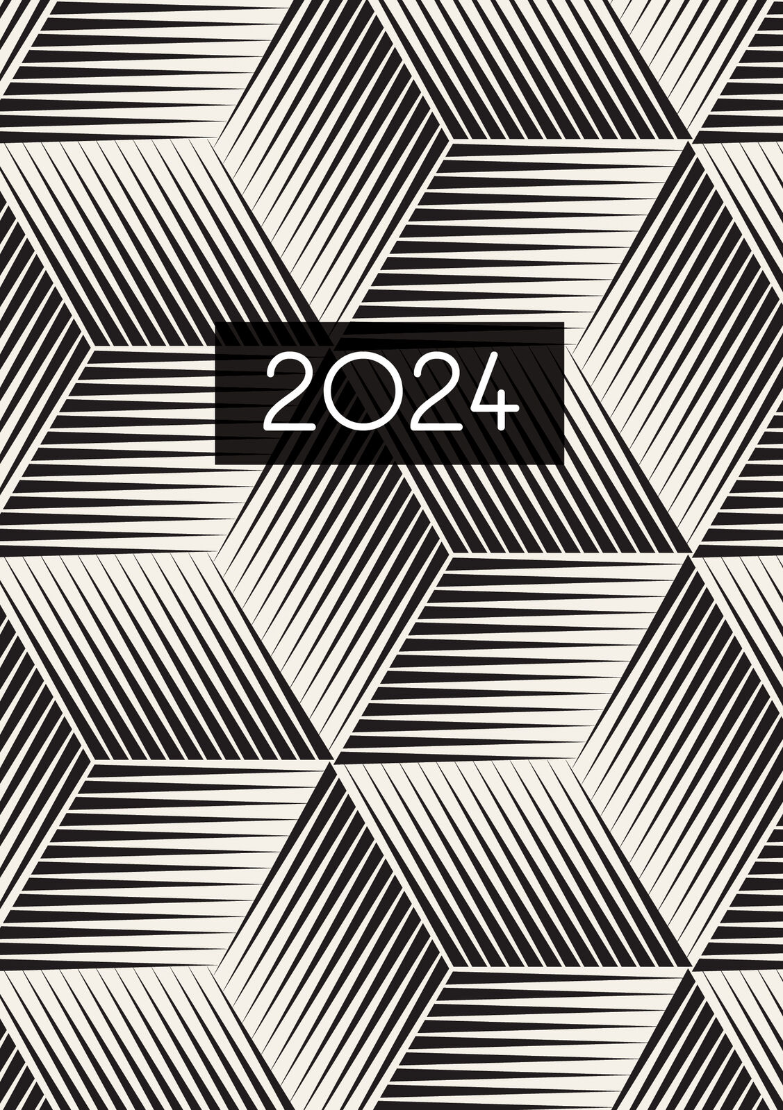 Black & White - 2024 A5 Padded Cover Diary Premium Planner Book New Year Gift