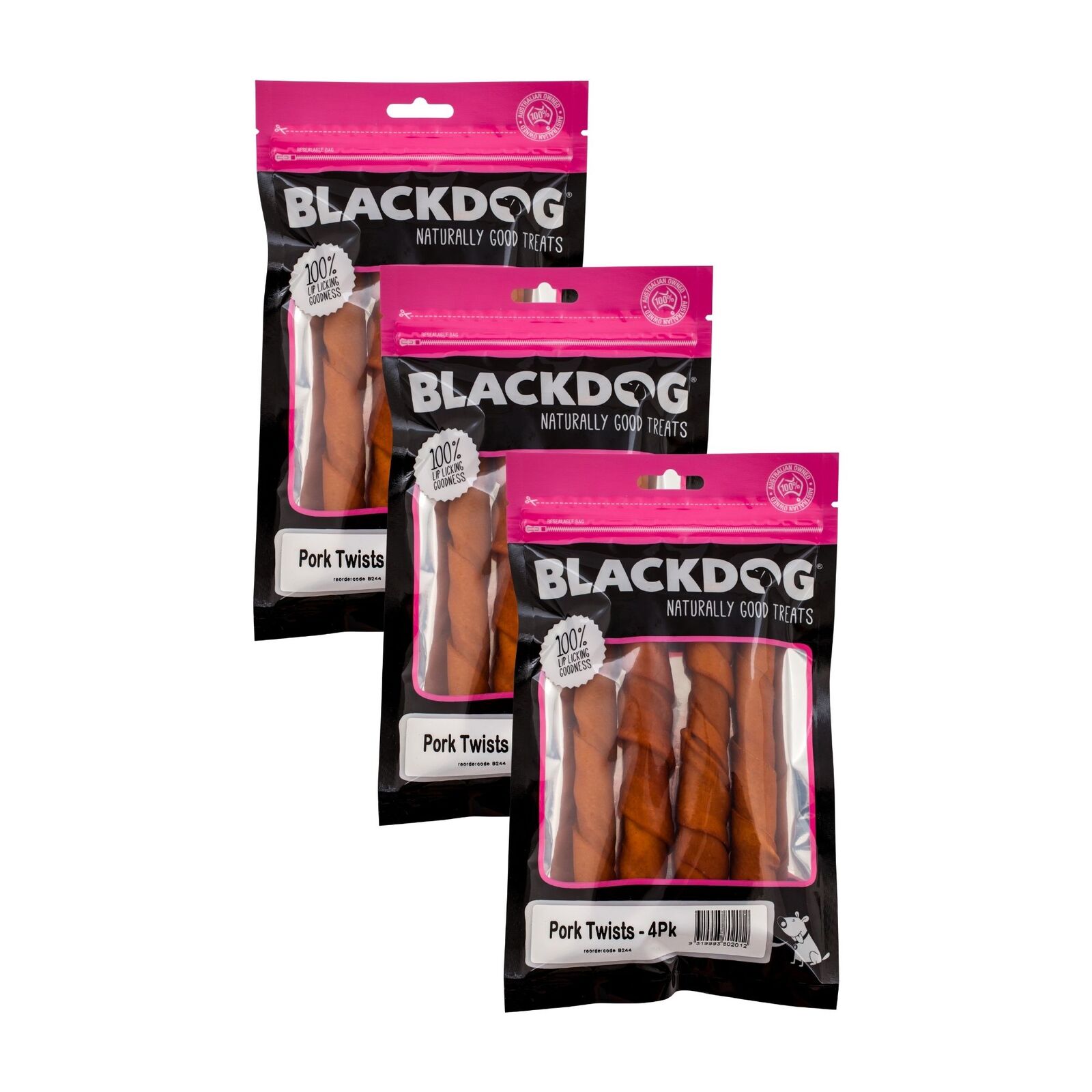 Blackdog Pork Twists are natural, chewy dog treats made from premium pork, twisted into a fun shape for dogs to enjoy. They are air dried to lock in flavour and nutrition, providing a high protein snack that supports muscle health and energy. Packaged conveniently, these twists are ideal for rewarding, training, or everyday treating.