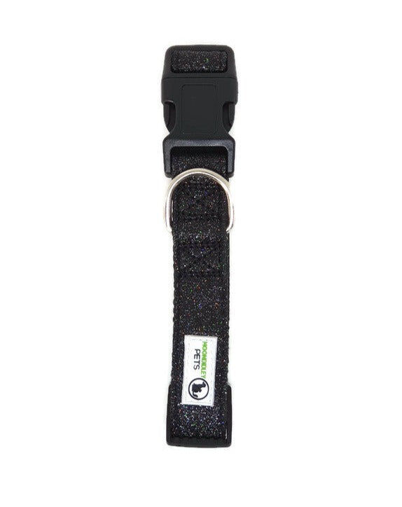 Bling Glitter Overlay Nylon Dog Collar Breakaway Buckle - Moondidley Pets Large Black