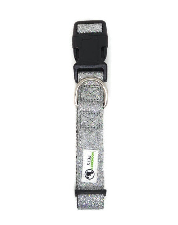 Bling Glitter Overlay Nylon Dog Collar Breakaway Buckle - Moondidley Pets Large Silver