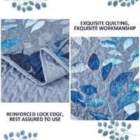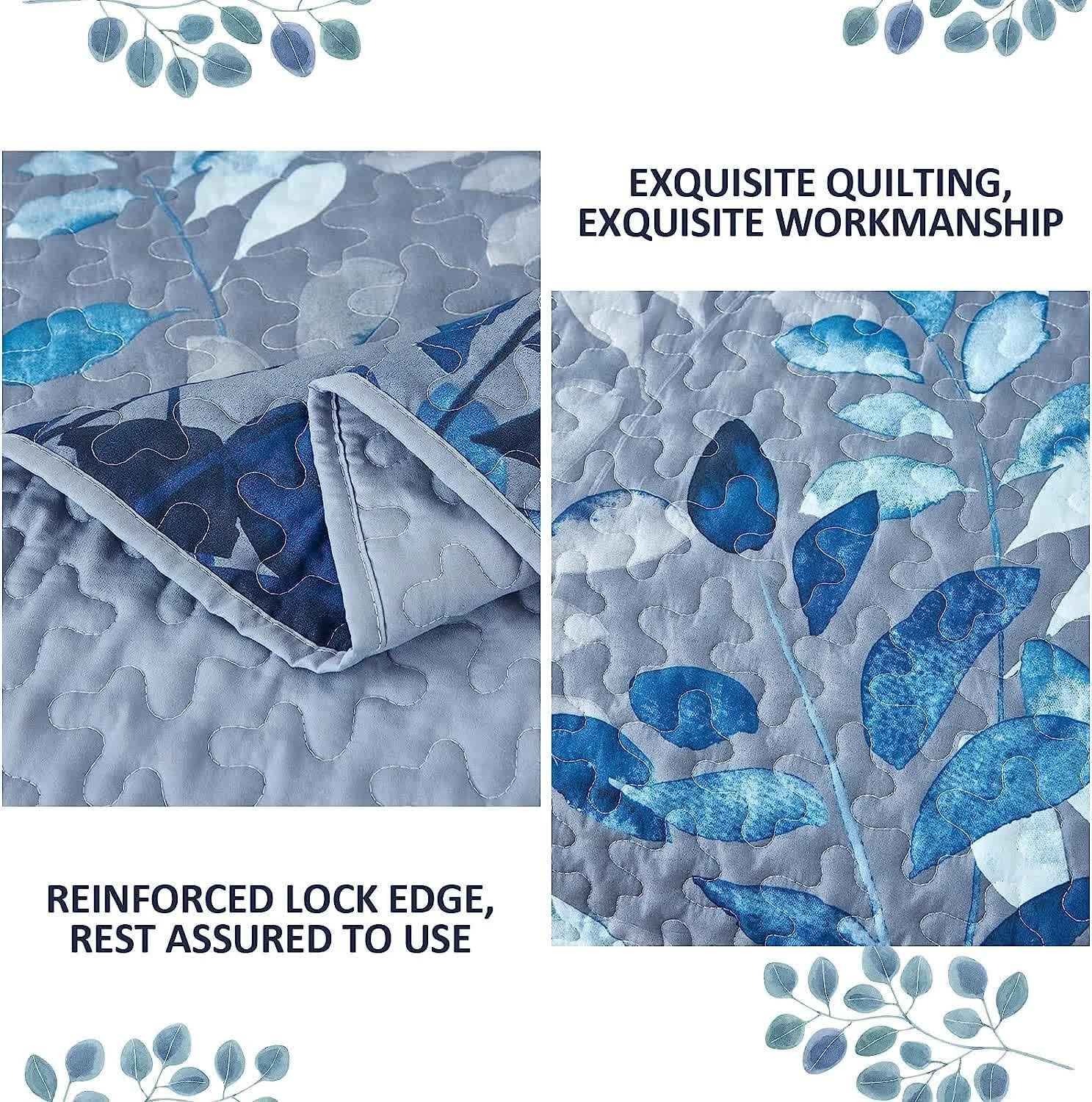 Blue Garden Coverlet Set with Quilted Floral Pattern and Pillowcases