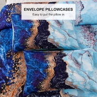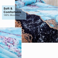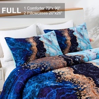 Blue Marble Comforter Set, King Size, Retro Watercolor 3-Piece Bedding Collection