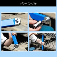 Blue Offset Extension Wrench Set 15.35" Long, 1/4", 3/8", 1/2" Square Drive Adapters 1/4" Socket | Ideal for Tight Spaces
