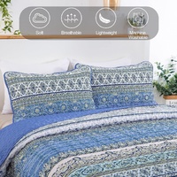 Blue teak Sunrise Floral Lightweight 3 Pc Bedspread & Pillow Cover Set