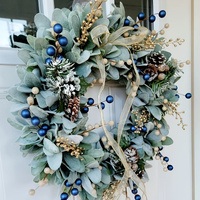 The 40cm Blueberry Eucalyptus Wreath with Golden Accents is a charming home decoration perfect for any door or wall. Its vibrant berries and eucalyptus leaves are highlighted with subtle golden touches, creating a festive and welcoming appearance. Refer to the image for exact dimensions and style, making it easy to match your space. This wreath is ideal for holidays, celebrations, or everyday dÃcor, adding a sophisticated touch wherever it is displayed.
