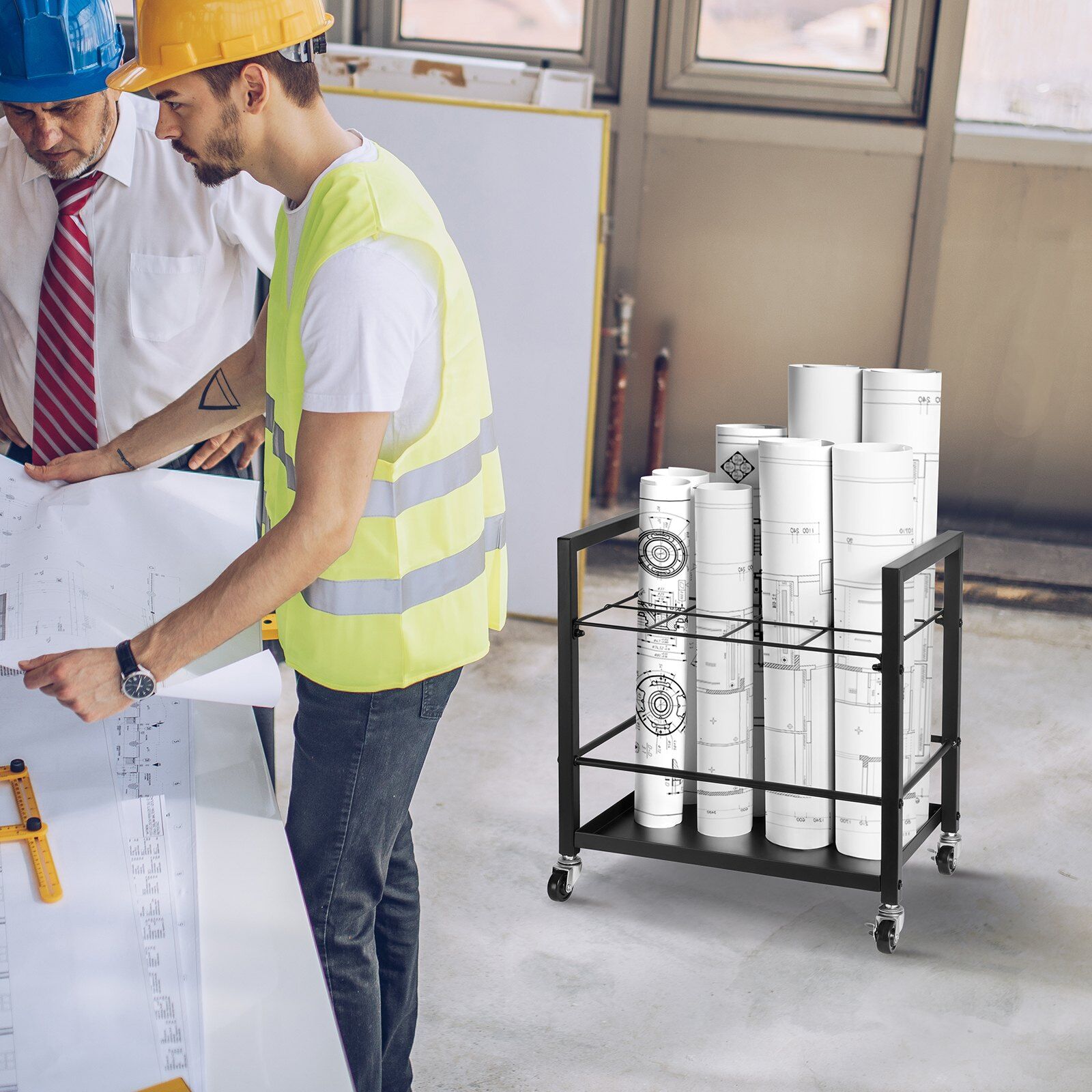This blueprint storage rack features 12 slots of 3.5"x3.5"(90x90 mm) each, providing ample and organized storage space for your blueprints, construction plans, and various documents. Meet basic file storage needs. The vertical roll storage maximizes space, ensuring easy access to needed documents.