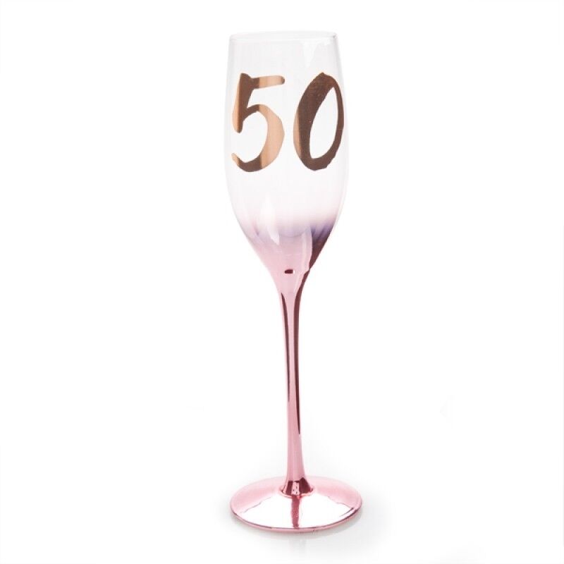 Striking metallic rose gold climbs the stem and fades into the body of the glass