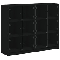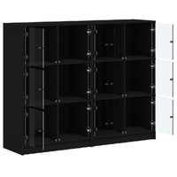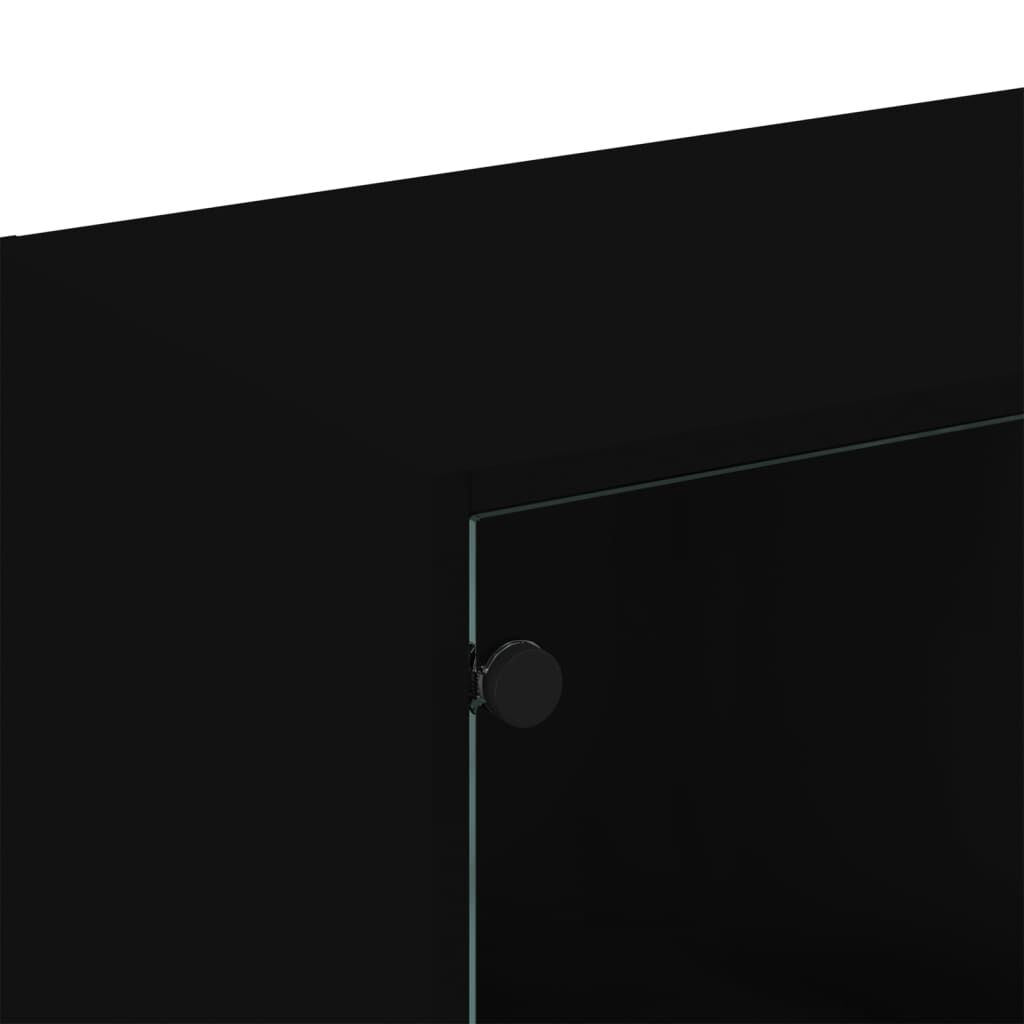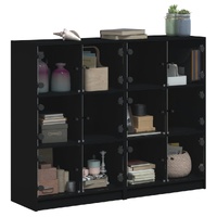 This bookcase provides an ideal solution for organising your books and will add a touch of modern charm to your interior. Durable and sturdy material: The engineered wood is of exceptional quality with smooth surface and also features strength, stability and resistance to moisture.Ample storage space: The bookshelf offers ample storage space for keeping your collection of books, magazines, and documents in good order.Stable and sturdy top: The top of the storage cabinet is perfect for displaying your decorative items, picture frames, and potted plants.Practical design: Keep your essentials free from dust by hiding them behind the glass doors. In addition, the black handles make it easy to open the book shelf. Warning:To prevent it from tipping over, this product must be used with the provided wall attachment device.