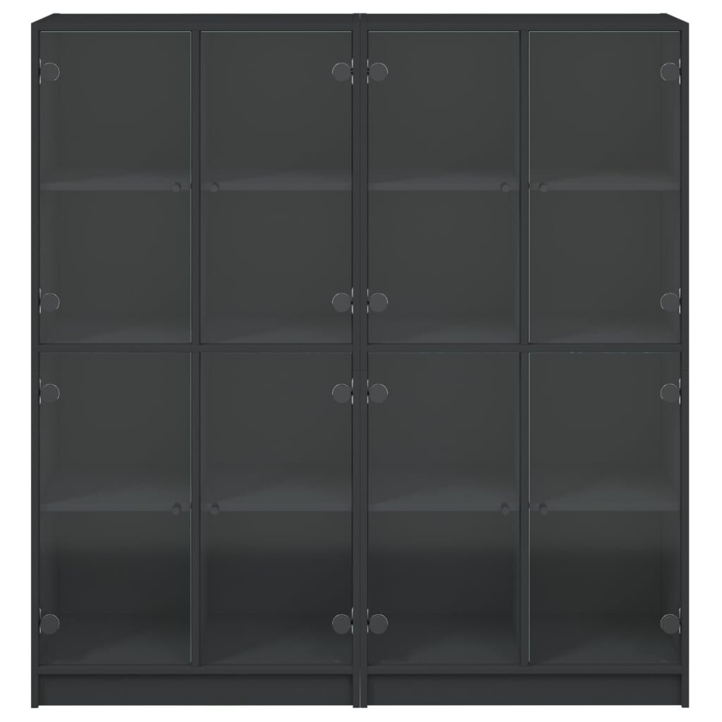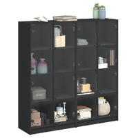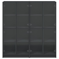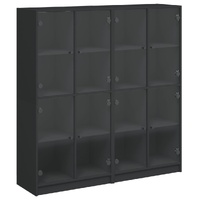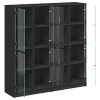 This bookcase provides an ideal solution for organising your books and will add a touch of modern charm to your interior. Durable and sturdy material: The engineered wood is of exceptional quality with smooth surface and also features strength, stability and resistance to moisture.Ample storage space: The bookshelf offers ample storage space for keeping your collection of books, magazines, and documents in good order.Stable and sturdy top: The top of the storage cabinet is perfect for displaying your decorative items, picture frames, and potted plants.Practical design: Keep your essentials free from dust by hiding them behind the glass doors. In addition, the black handles make it easy to open the book shelf. Warning:To prevent it from tipping over, this product must be used with the provided wall attachment device.