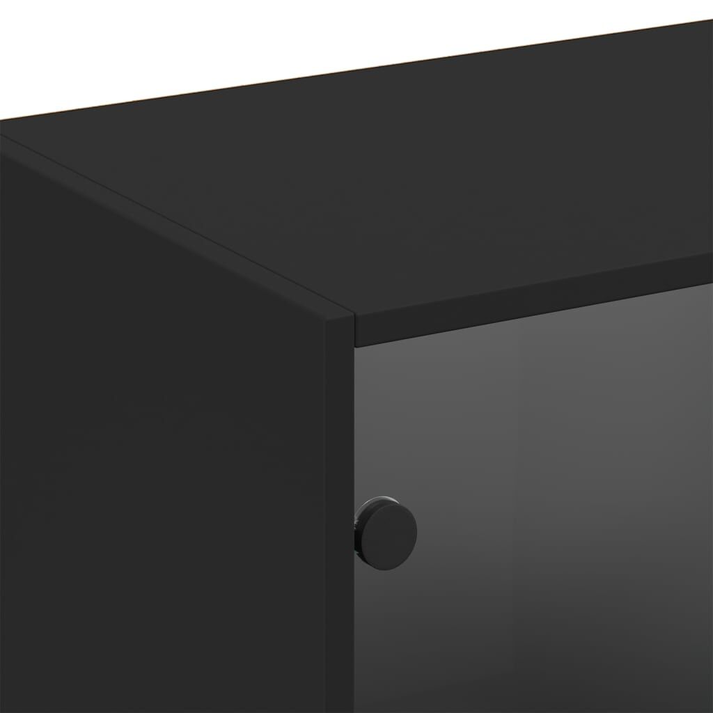 This bookcase provides an ideal solution for organising your books and will add a touch of modern charm to your interior. Durable and sturdy material: The engineered wood is of exceptional quality with smooth surface and also features strength, stability and resistance to moisture.Ample storage space: The bookshelf offers ample storage space for keeping your collection of books, magazines, and documents in good order.Stable and sturdy top: The top of the storage cabinet is perfect for displaying your decorative items, picture frames, and potted plants.Practical design: Keep your essentials free from dust by hiding them behind the glass doors. In addition, the black handles make it easy to open the book shelf. Warning:To prevent it from tipping over, this product must be used with the provided wall attachment device.