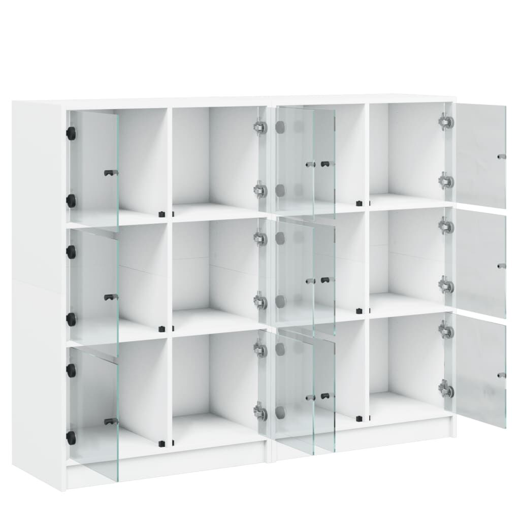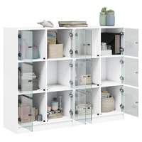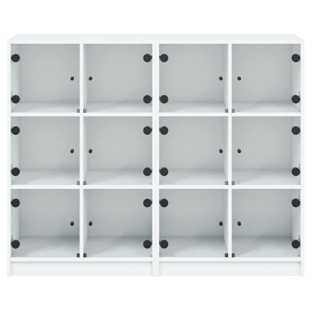 This bookcase provides an ideal solution for organising your books and will add a touch of modern charm to your interior. Durable and sturdy material: The engineered wood is of exceptional quality with smooth surface and also features strength, stability and resistance to moisture.Ample storage space: The bookshelf offers ample storage space for keeping your collection of books, magazines, and documents in good order.Stable and sturdy top: The top of the storage cabinet is perfect for displaying your decorative items, picture frames, and potted plants.Practical design: Keep your essentials free from dust by hiding them behind the glass doors. In addition, the black handles make it easy to open the book shelf. Warning:To prevent it from tipping over, this product must be used with the provided wall attachment device.