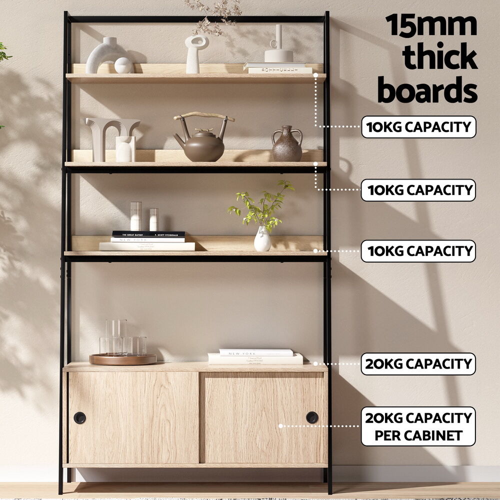 $142.87Show off your favourite home décor with the Artiss Mira Display Shelf. Built with a powder-coated metal frame, high-quality fixings and thick MDF board, the shelves are rust and corrosion-resistant as well as strong and durable. Each shelf uses 15mm thick board and has a 10kg weight capacity to easily hold your books, games, artwork, souvenirs and other trinkets. Two additional cabinets at the base ensure your home will be organised and clutter-free. The smooth paper veneer finish adds to the unit's style and functionality, keeping it easy to clean and maintain. Easily assembled with the included instructions, the Artiss Mira Display Shelf is the perfect addition to customise your living space.