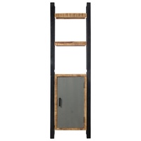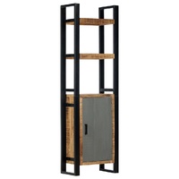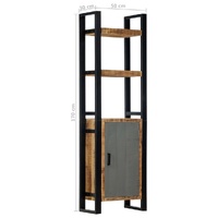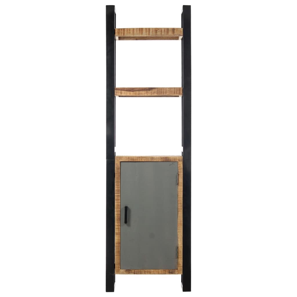 Made of solid mango wood, this wooden bookshelf will be the centre of attraction for your interior. This bookshelf is made of solid mango wood, a hardwood with dense grains. Mango wood not only has the strength to bear the weight, but also stands the wear and tear of time. Every step of the process is carried out with the greatest care, be it polishing or lacquering. The exquisite craftsmanship and the eye-catching wood grains make every piece of furniture distinctive and slightly different from the next. Additionally, this boat wood cabinet features 2 shelves and a door, offering an ideal solution for storing and displaying your book collection, magazines, documents, as well as decorative items like photo frames and collectables. The solid iron stand offers extra durability and sturdiness. Important note: Colours and wood grain vary from piece to piece, making each of our display shelves unique. The delivery is random, ensuring the exclusivity and individuality of your product.