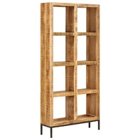 Made up of solid mango wood, this bookshelf will be the centre of attraction for your interior. This wooden bookshelf is made of solid mango wood, a hardwood with dense grains. Rough mango wood not only has the strength to bear the weight, but also stands the wear and tear of time. Every step of the process is carried out with the greatest care, be it polishing or lacquering. The exquisite craftsmanship and the eye-catching wood grains make every piece of furniture distinctive and slightly different from the next. Additionally, this boat wood cabinet features 8 compartments, offering an ideal solution for storing and displaying your book collection, magazines, documents, as well as decorative items like photo frames and collectables. Important note: Colours and wood grain vary from piece to piece, making each of our display shelves unique. The delivery is random, ensuring the exclusivity and individuality of your product.