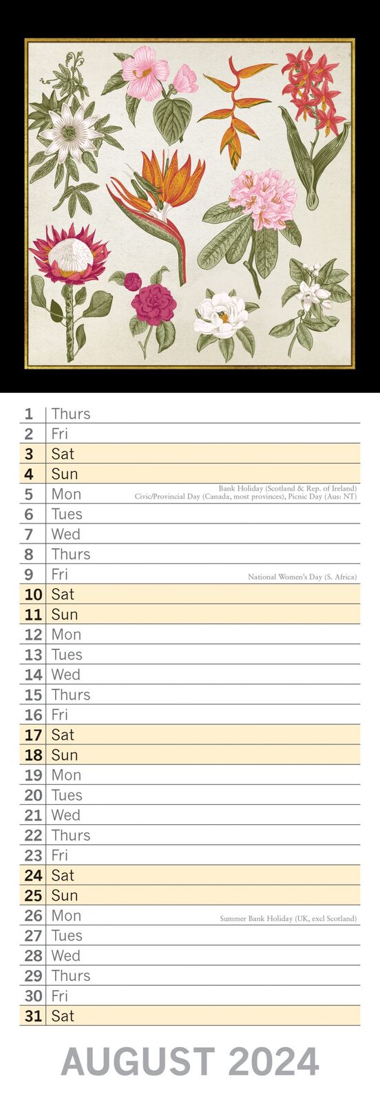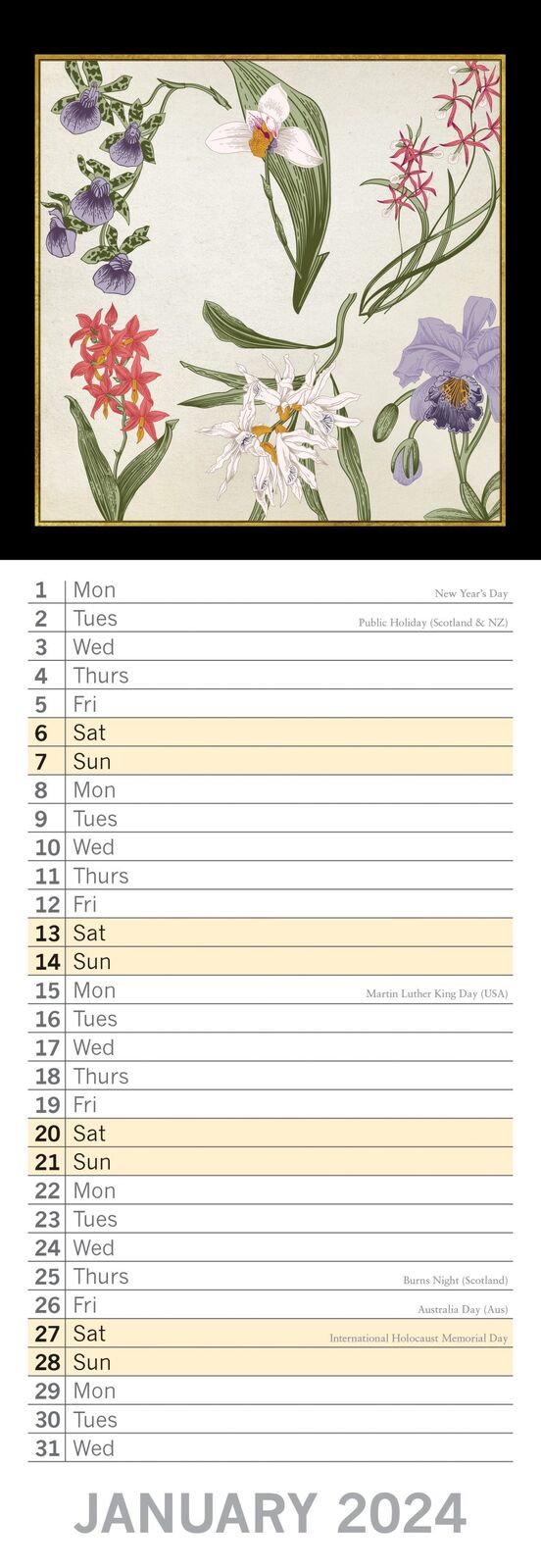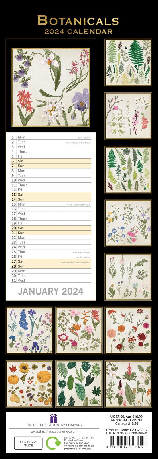 Botanicals - 2024 Slimline Slim Wall Calendar Hanging Planner New Year Gift
