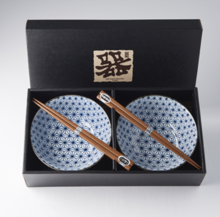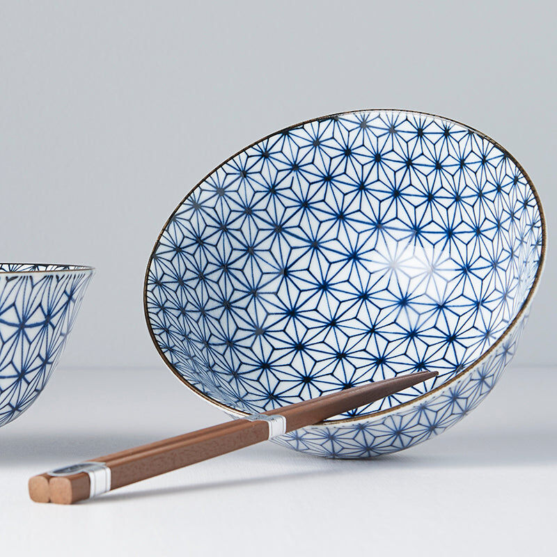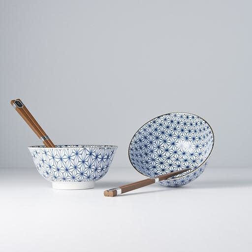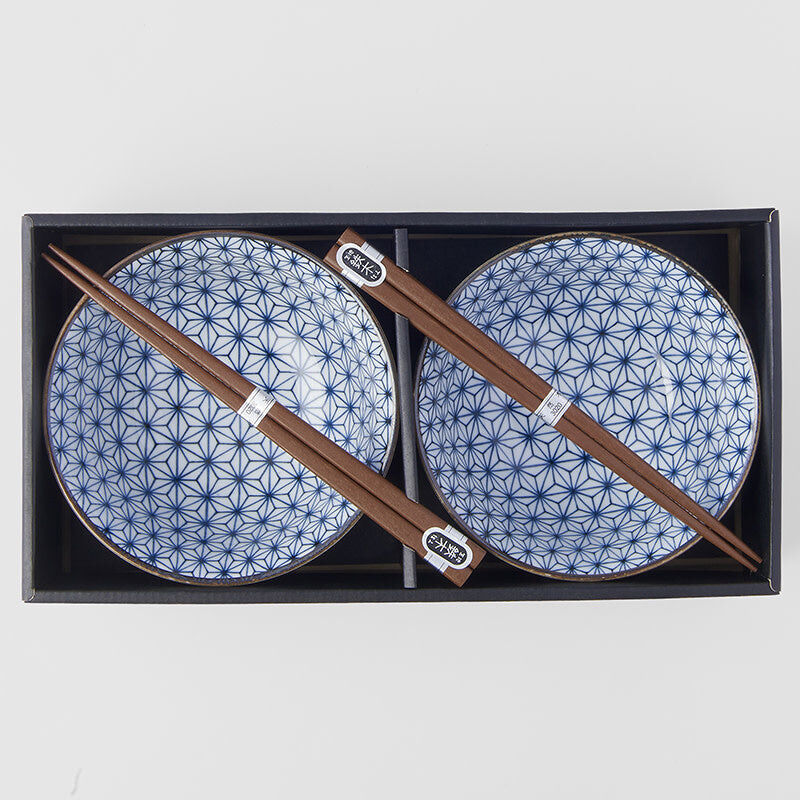 Bowl Set 2pcs with Chopsticks Starburst Blue Design