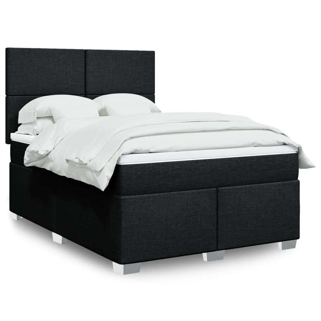 Box Spring Bed with Mattress Black Double Fabric