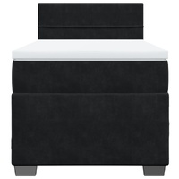 Use this box spring bed to enjoy a restful night's sleep! It offers you maximum relaxation and pleasant sleep. Soft velvet: Velvet is a soft, luxurious fabric that is recognised by its dense pile of evenly cut fibres that have a smooth nap. Velvet fabric features a distinctive soft feel, making it comfortable to touch.Pocket spring mattress: This pocket sprung mattress has individual pocket springs that work independently to provide personalised support by reacting only to pressure in each area. This design prevents "roll-together" and reduces motion transfer compared to traditional open coil mattresses. Each pocket spring supports the body individually.Comfortable mattress topper: This mattress topper enhances support and comfort with its soft, breathable surface while extending the life span of your mattress. Its removable cover allows for easy washing, making maintenance a breeze.Slats for optimal support: The bed frame is complete with slats to offer essential support and breathability to your mattress. Good to know:For hygiene reasons, the mattress cannot be returned if the packaging is removed or opened.