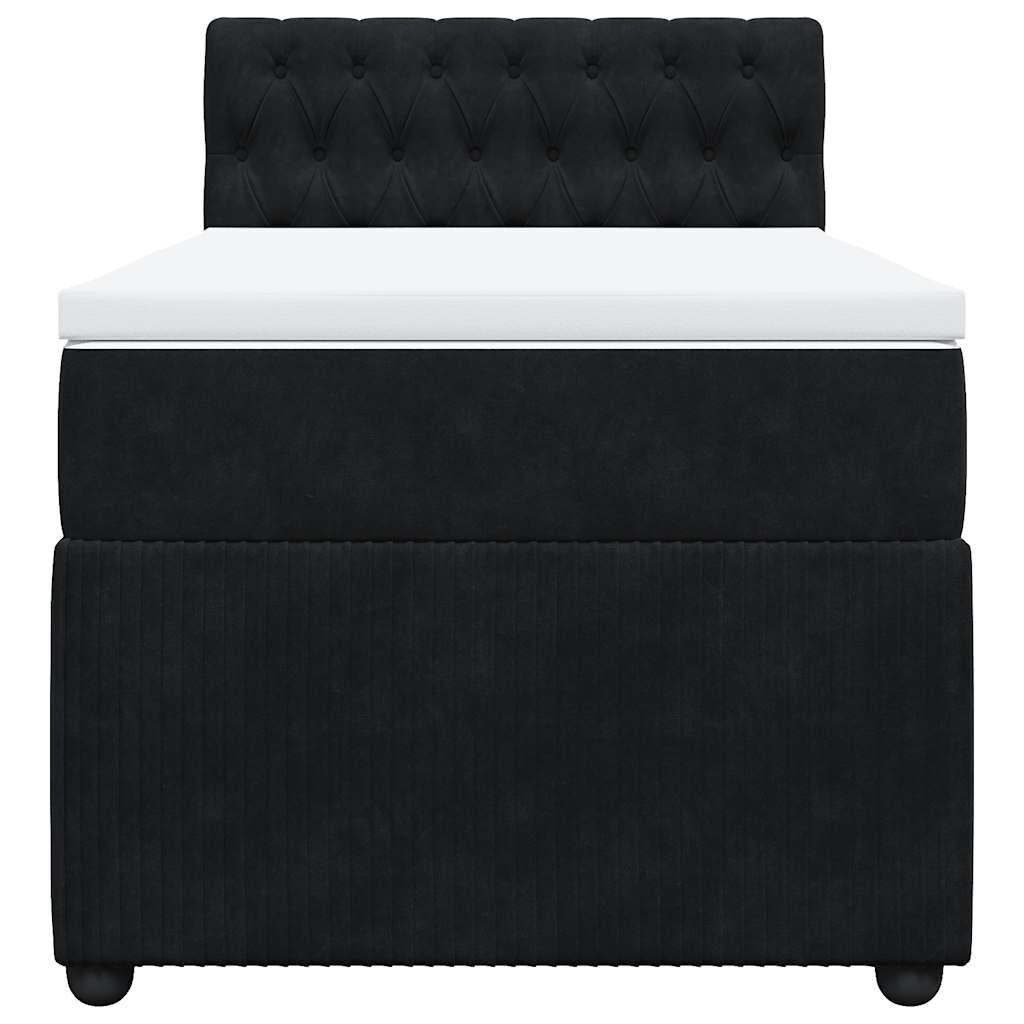 Use this box spring bed to enjoy a restful night's sleep! It offers you maximum relaxation and pleasant sleep. Soft and comfortable material: Velvet fabric features a soft and smooth surface that delivers a delightful sensation against the skin, bringing you warmth and ultimate comfort.Pocket spring mattress: This pocket sprung mattress has individual pocket springs that work independently to provide personalised support by reacting only to pressure in each area. This design prevents "roll-together" and reduces motion transfer compared to traditional open coil mattresses. Each pocket spring supports the body individually.Comfortable mattress topper: This mattress topper enhances support and comfort with its soft, breathable surface while extending the life span of your mattress. Its removable cover allows for easy washing, making maintenance a breeze.Slats for optimal support: The bed frame is complete with slats to offer essential support and breathability to your mattress. Good to know:For hygiene reasons, the mattress cannot be returned if the packaging is removed or opened.
