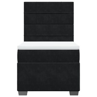 Use this box spring bed to enjoy a restful night's sleep! It offers you maximum relaxation and pleasant sleep. Soft and comfortable material: Velvet fabric features a soft and smooth surface that delivers a delightful sensation against the skin, bringing you warmth and ultimate comfort.Pocket spring mattress: This pocket sprung mattress has individual pocket springs that work independently to provide personalised support by reacting only to pressure in each area. This design prevents "roll-together" and reduces motion transfer compared to traditional open coil mattresses. Each pocket spring supports the body individually.Height-adjustable headboard: The headboard is adjustable in height to suit your preference.Comfortable mattress topper: This mattress topper enhances support and comfort with its soft, breathable surface while extending the life span of your mattress. Its removable cover allows for easy washing, making maintenance a breeze.Slats for optimal support: The bed frame is complete with slats to offer essential support and breathability to your mattress. Good to know:For hygiene reasons, the mattress cannot be returned if the packaging is removed or opened.