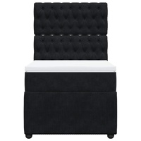 Use this box spring bed to enjoy a restful night's sleep! It offers you maximum relaxation and pleasant sleep. Soft and comfortable material: Velvet fabric features a soft and smooth surface that delivers a delightful sensation against the skin, bringing you warmth and ultimate comfort.Pocket spring mattress: This pocket sprung mattress has individual pocket springs that work independently to provide personalised support by reacting only to pressure in each area. This design prevents "roll-together" and reduces motion transfer compared to traditional open coil mattresses. Each pocket spring supports the body individually.Height-adjustable headboard: The headboard is adjustable in height to suit your preference.Comfortable mattress topper: This mattress topper enhances support and comfort with its soft, breathable surface while extending the life span of your mattress. Its removable cover allows for easy washing, making maintenance a breeze.Slats for optimal support: The bed frame is complete with slats to offer essential support and breathability to your mattress. Good to know:For hygiene reasons, the mattress cannot be returned if the packaging is removed or opened.