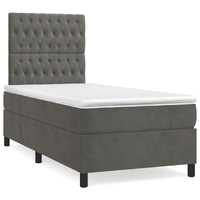 Use this box spring bed to enjoy a restful night's sleep! It offers you maximum relaxation and pleasant sleep. Soft velvet: Velvet is a soft, luxurious fabric that is recognised by its dense pile of evenly cut fibres that have a smooth nap. Velvet fabric features a distinctive soft feel, making it comfortable to touch.Practical headboard: The bed headboard is adjustable in height as per your preference. The bed header provides you with excellent back support while you're sitting up in bed to read or watch TV.Pocket spring mattress: The built-in individual pocket spring is known for its very high quality while ensuring a high level of durability and adaptability. It can effectively absorb the noise and shock caused by throwing and turning.Medium-hard support: The bed mattress perfectly provides added stability and just the right level of firmness without sacrificing comfort. So, it is ideal for back or stomach sleepers.Skin-friendly mattress topper: The mattress protector features a hard-wearing as well as skin-friendly fabric cover, making it soft and comfortable. Note:For hygiene reasons, the mattress cannot be returned if the packaging is removed or opened.Each product comes with an assembly manual in the box for easy assembly.